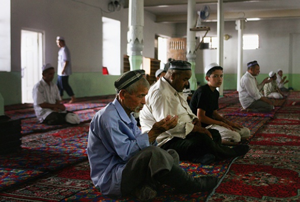 Узбекские мусульмане на дневной молитве в мечети Маргилана. (Фото: Uriel Sinai/Getty Images)