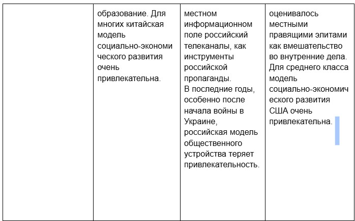 Таким образом, выясняется что у самого могущественного государства на земле не так много козырей, которые можно было бы представить для борьбы за влияние в регионе с главными соперниками. Заметим, что мягкие инструменты силы, в том числе, USAID были разрушены самой администрацией Трампа из-за неприятия ценностей, которые продвигали эти организации (формально причиной называлась необходимость экономии бюджетных средств). Также был нанесен удар по «Радио Свободная Европа/Радио Свобода», которая играла важную роль в информационном поле стран ЦА. Фактически эта радиостанция, точнее, ее национальные службы, в некоторых странах ЦА была единственным противовесом российской пропаганде.Экономика, безопасность, политика